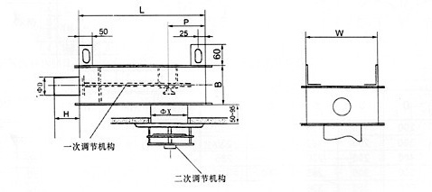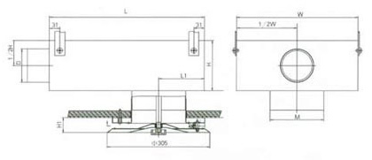 | 型號(hào) | ΦX | ΦD | L | W | B | P | H | 風(fēng)量m³/h | 天花板開(kāi)孔 |