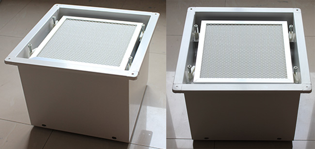 高效送風(fēng)口不是傳統(tǒng)意義上的散流器送風(fēng)口或百葉送風(fēng)口,它是由冷軋板或不銹鋼板制作,冷軋鋼板表面經(jīng)噴塑或烤漆處理,制作成的一個(gè)靜壓箱體,上面有吊環(huán)、螺桿、或螺母(為壓緊高效過(guò)濾器使用),進(jìn)風(fēng)口法蘭、靜壓箱內(nèi)壁貼有保溫材料,